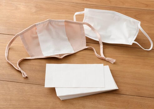 ◆ 広げたマスクの内側に装着して使います。メイクや汗などで汚れたら、サッと取り替えることができ、いつも快適です。