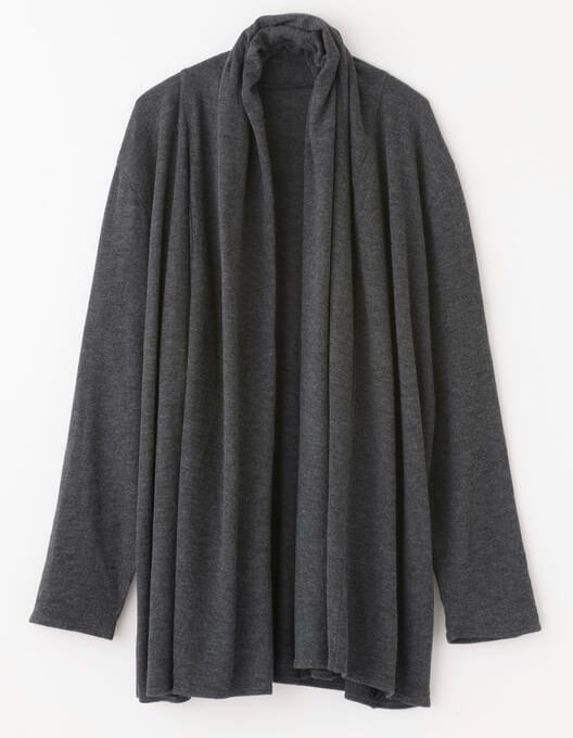 ◆ 短く着ると、ボリュームたっぷりのショールジャケット風の装いになります。たっぷり癒布の柔らかさに包まれることができます。長く着るときはコーディガン(コートとカーディガンの中間的な羽織もの)風に。 膝下までの安心感、すっぽり包まれるリラックスタイムをお楽しみください。
