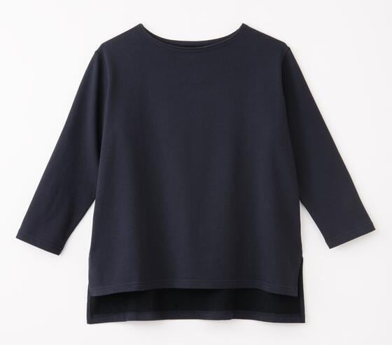◆ デザインは、首元がお洒落なラインのボートネックで頭首回りをきれいに見せます。