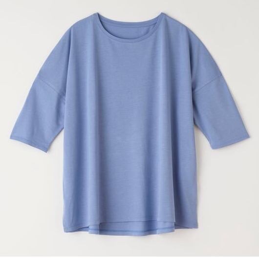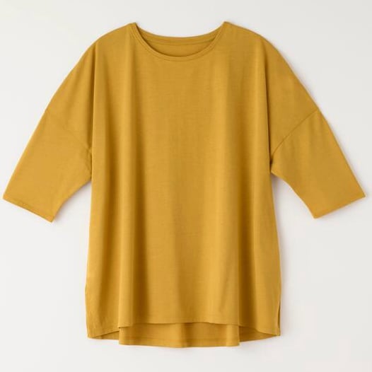 ◆ ドロップショルダー(袖付け部分を肩より落としてあるデザイン)でスッキリとしたシルエット、たっぷりの身巾と軽やかな着心地で季節を問わず快適にお召しいただけます。体のラインに添って綺麗なドレープが生まれるので、体型をカバーする効果もあります。